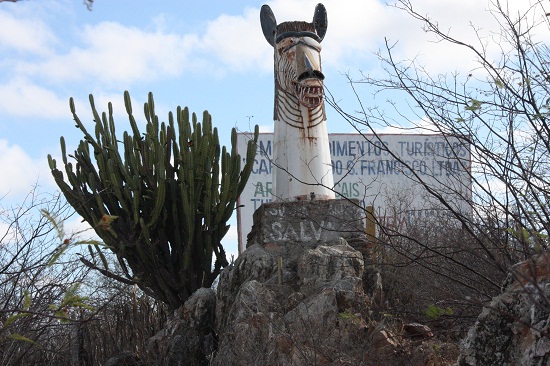 Na entrada da cidade de Juazeiro quem vem de Senhor do Bonfim pela BR, no lado direito, pouca gente percebe a imponente carranca que saúda os visitantes. Marca antiga dos barqueiros navegantes do Rio São Francisco para espantar os maus espíritos, lá está ela cravada numa pedra entre os galhos secos cinzentos da seca ao lado de um mandacaru, símbolo de resistência do sertão.