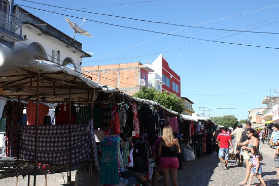 No centro, barracas de confecções, de miudezas, imagens, peças e objetos de lembranças das romarias que começam em julho e só terminam em dezembro, se misturam nas ruas e calçadas apertadas tornando muito difícil e complicada a mobilidade entre motoristas e pedestres.