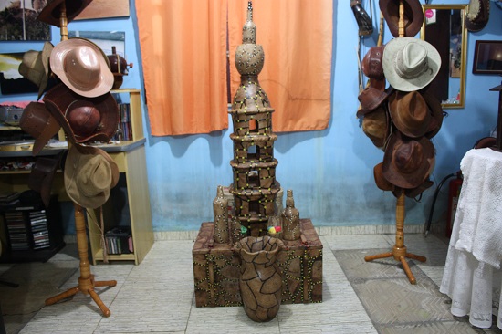 Tudo começou com colagens em garrafas, mas o trabalho nas horas vagas, feito como uma terapia espiritual, se agigantou e passou para outros objetos maiores no Espaço Cultural onde também realizamos nosso Sarau entre amigos artistas há sete anos.