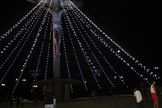 Estive visitando o monumento do Cristo de Mário Cravo no alto da Serra do Periperi no último domingo por volta das 20 horas, embora com receio pela falta de segurança, tanto na subida quanto no local. Levei minha máquina fotográfica para registrar o colorido das luzes. Comentei minha ida com alguns amigos que me chamaram de maluco, com muita coragem de ir lá, principalmente à noite.
