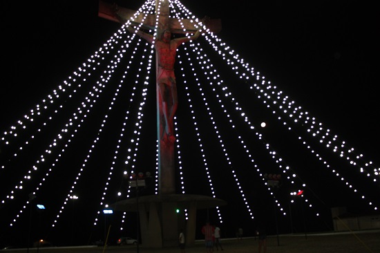 Na subida do Cruzeiro, a iluminação é precária (muito escuro), começando a partir daí o medo de assalto. Se o Cristo é um cartão postal de Vitória da Conquista, como dizem, é lógico que deveria ser visitado por todos moradores e, não somente para alguns, que se arriscam indo até lá. Por que pelo menos nesta data natalina não se colocou transporte público ou privado, subindo e descendo para o povo conhecer a iluminação?