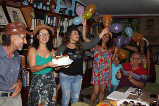 Não fazia parte da programação, que é eclética e informal, mas Marta Moreno com outros integrantes, como Vandilza Gonçalves, a anfitriã da casa, Cleide e um grupo de crianças surpreenderam o jornalista Jeremias Macário, cantando parabéns pelo seu aniversário que foi no último dia 11 de fevereiro. Para combinar com o homenageado, todos entoaram a música “No Sítio do Pica Pau Amarelo”. A esta altura, o Sarau já contava com a presença de mais de 30 pessoas.