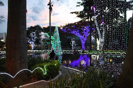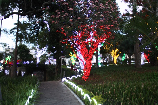 Quanto a iluminação, o que mais chamaram a atenção foi a técnica empregada no jogo de luzes com várias cores nas árvores e a ocupação em locais mais vazios, com enfeites deslumbrantes. O final de tarde, com o pôr-do-sol refletindo no jardim, deixa tudo mais encantado, e as opiniões são unânimes sobre o trabalho da Prefeitura Municipal. Logo ao cair da noite vão chegando as famílias com as crianças, e a “princesa” faz sua pose de menina bonita para os fleches dos celulares e das máquinas fotográficas profissionais.