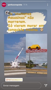 O próprio autor da arte, um grande e talentoso escultor conquistense que tem dedicado toda sua vida a mostrar seu valioso trabalho, com recursos próprios, disse encarar as críticas com naturalidade, e que sua intenção foi puramente a de homenagear à ciência que está batalhando para encontrar uma vacina, ou medicamentos para acabar de vez com o vírus, de forma que a vida no planeta, de cerca de oito bilhões de habitantes, volte ao seu normal.