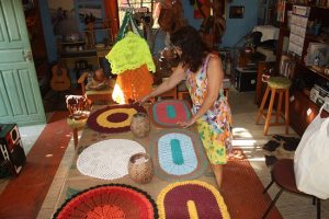 Não é fácil ficar parado sem uma atividade remunerável. O tempo corre e a angústia vai invadindo sua mente por falta de um emprego. Em seu caso, o sentimento de ausência numa sala de aula entre alunos batia forte, mas tinha que vencer mais um obstáculo em sua vida. Foi aí que surgiu a ideia de confeccionar tapetes, souplasts (jogo americano), toalhas e outras utilidades do lar, de forma artesanal com fios e cordões de algodão que são encontrados em armarinhos.
