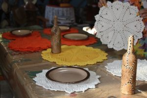 Outra arte interessante de Vandilza é o aproveitamento de coadores de café, inclusive com o fornecimento do material por outras pessoas amigas. É a chamada arte da “Borra do Café”, que utiliza colas e exige um cuidado para que a montagem não tenha falhas.