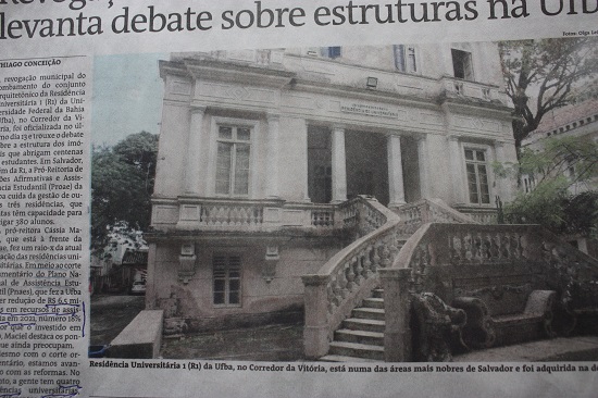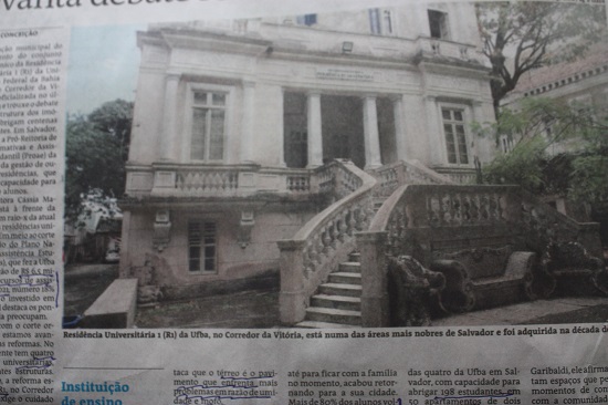 Neste domingo (dia 29/08) as lembranças jorraram outra vez quando vi e li uma matéria no jornal “A Tarde” sobre a situação das residências universitárias, com uma foto da escadaria de entrada do prédio neoclássico. Logo bateram as saudades quando era residente universitário.