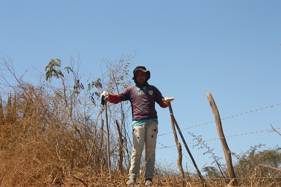No povoado de Tanque Velho, Gilmar Barbosa Damaceno, de 38 anos, levantava a poeira com sua foice fazendo a limpeza da cerca. Por sorte arranjou um trabalho como diarista (não por muito tempo) para completar o auxílio de 600 reais que a mulher recebe do governo federal. Debaixo do sol escaldante, ele recebe apenas minguados 50 reais pelo árduo serviço.