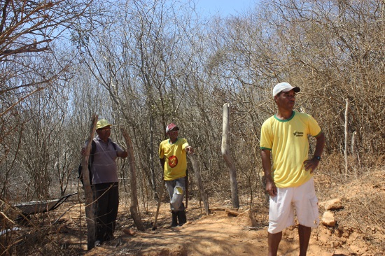 Na mesma situação, próximo da Lagoa do Batista, encontramos Wilson Alves Souza, de 32, que possui nove hectares de terra, seu pai de 75 anos, Dioclides e o primo Genivaldo Gonçalves Silva, de 51. Como não tinham nada a fazer durante a seca, estavam realizando um aceiro na cerca. Todos dependem de uma diária para sobreviver, isto quando acham. Seu Dioclides ainda se vira com a pequena aposentadoria que ganha.
