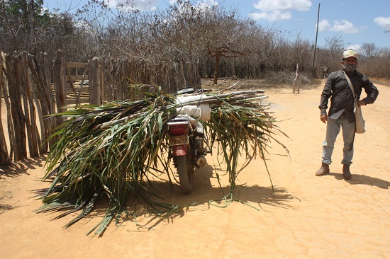 Seu Gescino estava numa moto transportando cana para dar ao gado que já passa fome por falta de pastagem. Dona Lucinete ainda se vale de uma cisterna no quintal com um pouco de água que ainda sobrou. Os animais têm que percorrer alguns quilômetros para beber na Lagoa.