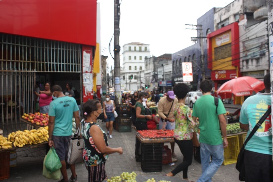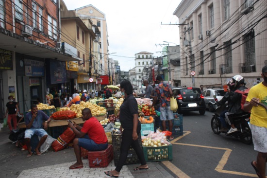 A travessa entre o Relógio de São Pedro com a Avenida Joana Angélica até o Colégio Central se transformou numa verdadeira feira de livre de verduras, frutas e outros produtos expostos a céu aberto, sem o mínimo cuidado de higienização. Aquilo ali é um atentado à saúde pública! Até a entrada da Estação da Lapa está tomada de ambulantes.