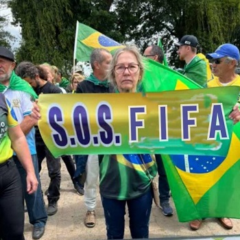A proibição transmitida pelas lideranças não chegou aos ouvidos daqueles fanáticos que acreditam até nos deuses do futebol. Assim, como invocaram a ajuda de seres extraterrestres, exibem faixas nos acampamentos pedindo socorro à FIFA. Trata-se, sem dúvida, de mais uma insanidade de um grupo de inocentes úteis, desocupados, que não têm consciência do papel ridículo a que estão sendo submetidos.