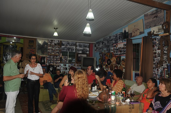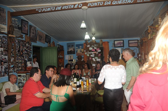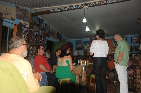 Fim dos debates, o Sarau continuou com seu formato de treze anos, com cantorias de viola do nosso músico e compositor Walter Lajes, com os causos do nosso companheiro Jhesus, declamações de poemas por Edna, Jeremias Macário, Vandilza, a anfitriã que a todos recebeu com um delicioso bode cozido, nosso Dall Farias e outros poetas.