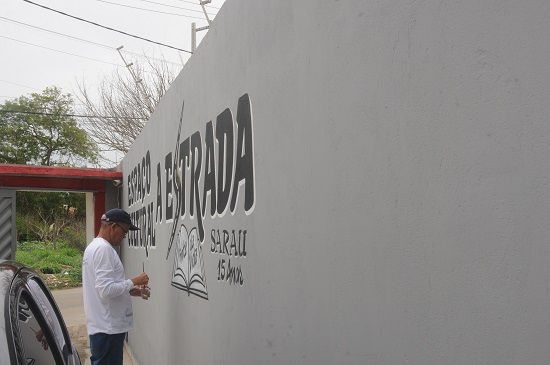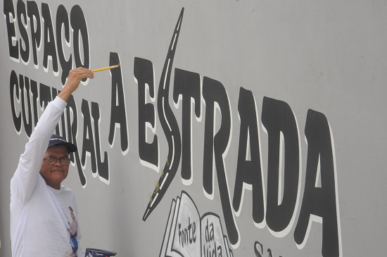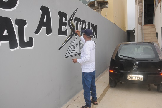 Com sua paciência, voz mansa e calma, Raimundo José dos Santos, o “Raimundo Pintor”, a longos anos nesse ofício, em Vitória da Conquista, vai aos poucos fazendo um encontro das cores nas paredes, que dão vida e charme aos lugares. Raimundo não é somente um pintor qualquer, como tantos outros por aí. É também uma espécie de grafiteiro e desenhista das palavras e figuras. Basta uma ideia, e do seu pincel vão brotando as imagens reais, como neste letreiro do Espaço Cultural A Estrada onde estão os traços de um “S” no formato de uma estrada, com gentes andantes numa peregrinação ao seu ponto final. Um livro representa a fonte da vida onde, como diz o nosso estradeiro Dal Farias, o conhecimento liberta. Raimundo não é somente requisitado em Conquista, mas também em outras cidades da região para pintar mercadinhos, oficinas, casas comerciais e até letreiros em prédios. Sente-se que ele faz sua pintura com amor e dedicação. São obras que merecem ser admiradas pela sua perfeição. Nossas lentes flagraram suas pinceladas. “Raimundo Pintor” vai além das tintas combinadas em paredes de muros e cômodos. É também um propagandista dos slogans e marcas empresariais. Com ele, segue o dom de pintar, sem melar sua arte. Não é somente um simples pintor, é um artista das letras e das ideias desenhadas.