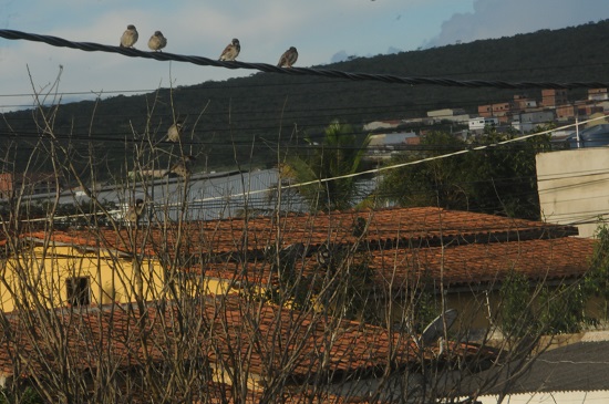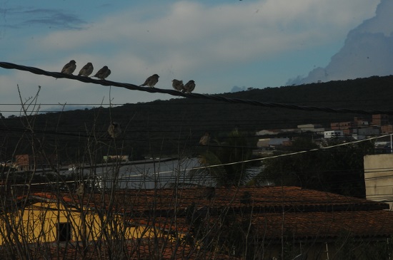 Um final de tarde telúrica e poética, pouco visível aos olhos humanos, que não é no campo, mas na cidade corrida feita de concreto, pedras, asfaltos e multidões com seus problemas. Nela (cidade) também existem cenários de meditação pintadas pela natureza. É só captar suas nuances. Os passarinhos pousam no fio do poste se preparando para o anoitecer, depois de mais um dia cortando ares com suas asas, de galhos em galhos, à procura de alimentos. É a luta pela sobrevivência, bem mais tranquila que a do ser humano. O que será que eles estavam confabulando? Alguns planos para o outro amanhecer? Que nada! Não existem essa preocupação! Nossas lentes não conseguem flagrar suas prosas. Do outro lado, belas imagens da Serra do Periperi ou Piripiri, como queiram, onde o rajar da luz do pôr-do-sol reflete numa nuvem lá no infinito do outro lado do horizonte. São cores que apascentam nossa alma depois de um dia que se vai para dar lugar ao anoitecer. O urbano também é rural, basta parar um pouco para observar os sinais da divina natureza, embora invisível aos olhos das pessoas. Tudo é poesia, dependendo da forma do seu olhar. A vida não é só reboliço, inquietação e tristeza, é também quietude, calmaria e renovação quando se decide observar a rotação natural das coisas. Os passarinhos e a Serra são apenas exemplos de elos que fazem mudar nossos sentidos. Existem muitas outras imagens que nos transportam para outras visões de um além diferente.