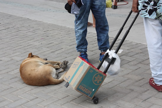 Em meio a todo o corre-corre da cidade agitada e desumana, com pessoas pra lá e pra cá nas calçadas e lojas, o cachorro, que não é escravo do tempo e vai vivendo do que encontra em seu presente, resolve, tranquilamente, tirar a sua soneca para depois seguir sua jornada em busca da sua sobrevivência. Ele já é um morador de rua como muitos seres humanos, porque vivemos numa sociedade cruel, egoísta e desigual onde só existe lugar para os mais fortes. Com certeza ele foi abandonado pelo seu dono, como um José, uma Maria ou João que não tiveram o direito à cidadania, como reza uma Constituição, dita democrática. Muitos podem até dizer que se trata apenas de um cão no sossego do seu sono, sem estar aí para o barulho dos motores, a poluição sonora e a confusão de uma gente na luta pela vida do cada vez mais consumir. O flagrante registrado pelas lentas da máquina do jornalista e escritor Jeremias Macário também demonstra nossa desumanidade, porque os animais também são nossos irmãos, e fazem parte do nosso cotidiano. Além do mais, sempre foi um fiel amigo, sem nada cobrar em troca, apenas o seu alimento. Não tem outras ambições e nem é egoísta e individualista. A sua soneca, em plena calçada, sem um lar ou alguém que lhe cuide como deveria, é uma imagem triste de abandono, e de que ainda não somos uma sociedade civilizada como pensamos ser.
