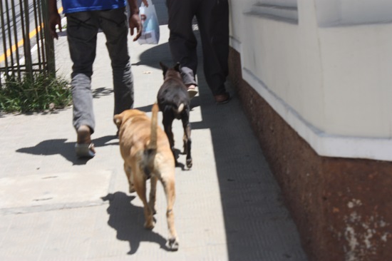 O clique das lentes da máquina do jornalista e escritor Jeremias Macário seguiu o passo a passo da cidade de dois cachorros na subida cansativa da praça entre dois senhores numa conversa animada, ou preocupada com a atual situação. Não se sabia se eles eram seus donos, mas tudo aparentava que sim, porque os animais não perdiam o ritmo e nem paravam para descansar. Se não eram seus donos, eles nem percebiam que estavam sendo seguidos, inclusive pela minha indiscreta máquina. São coisas do dia a dia da cidade que passam despercebidas das pessoas que vivem em correrias para resolver seus problemas, pensativas quanto as dificuldades de cada um, principalmente neste momento de pandemia. Sorte deles (os animais) que não precisam de protocolos para andar nas ruas, e nem sabem o que está acontecendo nesse mundo do vírus matador. No entanto, os nossos cachorros também são vítimas do abandono de seus donos que, insensivelmente, largam seus bicho nas ruas, sem proteção e os devidos cuidados. Eles sempre são vistos nos becos e nas esquinas, batalhando uma comida e agua para continuar sobrevivendo. Perambulam por ai, enquanto o poder público promete criar um centro de zoonose, para tratá-los como deveria ser. Algumas entidades têm feito algumas ações para minorar seus sofrimentos, mas são muitos que continuam vagando sem seus donos, e logo o cachorro que tem sido tão fiel ao homem, o qual deveria, pelo menos, corresponder com suas amizade e fazer o mesmo.