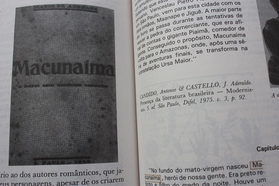 “No fundo do mato-virgem nasceu Macunaíma, herói de nossa gente. Era preto retinto e filho do medo da noite. Houve um momento em que o silêncio foi tão grande escutando o murmurejo do Uraricoera, que a índia tapannhumas pariu uma criança feia. Essa criança é que chamaram de Macunaíma”.