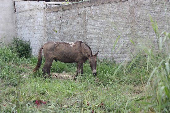 Depois de pegar no pesado durante todo dia de trabalho, puxando carroça pra e pra cá, felizmente ele teve seu descanso merecido e saiu por aí até encontrar sua refeição sossegada num terreno vazio, com muito capim nesses tempos chuvosos. Ainda tem gente, inclusive carroceiros ingratos e brutos, que praticam agressões e surram animais fazendo pegar peso e trabalhar além do seu limite. Como ele, o burro, seu irmão jumento, também sofre e ainda está sendo levado ao matadouro para servir de carne e pele para os chineses. São animais em extinção que já ajudaram muito o homem, principalmente o sertanejo nordestino, no sustento da família. É muita ingratidão. Este a pastar foi um flagrante do jornalista Jeremias Macário que, com sua máquina, clicou sua bela refeição do dia. Ninguém sabe do seu dono, mas o bom é que naquele momento ele estava se sentindo livre e à vontade.