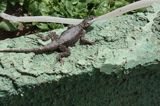 Essa é “cria” do quinta,l e é tão mansa que virou modelo fotográfico. Essa foi um dos flagrantes do jornalista Jeremias Macário. Vive entre as plantas e passeia nas hortas se alimentando de insetos, e até de folhas. Já alertei para não subir no telhado por causa da infernação dos gatos do vizinho. É parente do jacaré, quiçá dos dinossauros, a chamada lagartixa que é muita encontrada no agreste do nosso sertão. É, normalmente, arisca, mas essa do nosso quintal gosta de ouvir música e pousa até pra foto. Adora ser fotografada, como se vê na imagem.