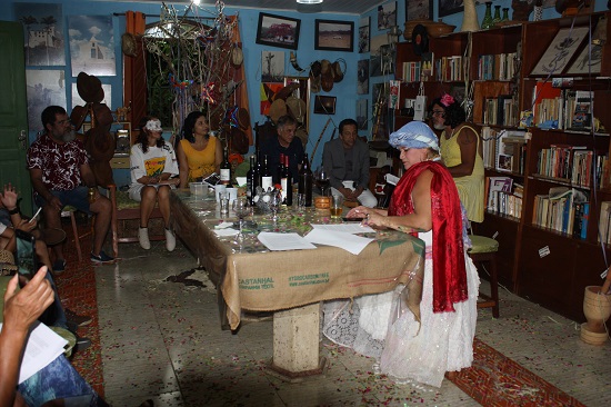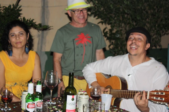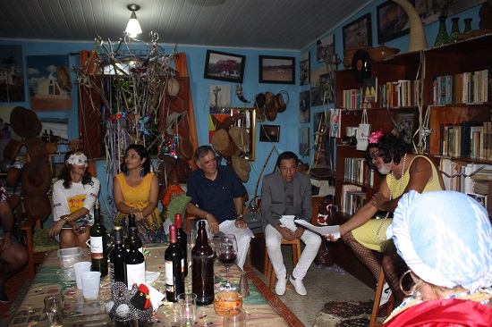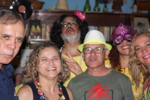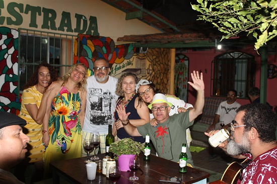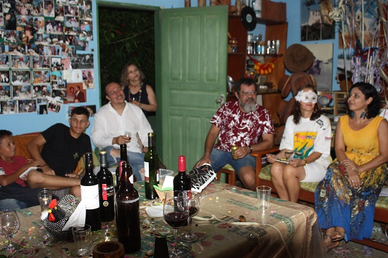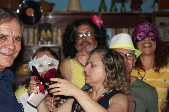 Como sempre, não faltaram as cantorias de Baducha e Walter Lajes, com canções carnavalescas que lembraram os velhos tempos. Como não poderia deixar de acontecer, todos entraram na folia no ritmo do tema. Edna, a mais fantasiada da festa, Vandilza Gonçalves, a anfitriã da casa, Cleide, Rôse, a cantora Marta Moreno e Céu foram as mais animadas. Já pela madrugada, depois das geladas e do vinho, todos degustaram as delícias do tira-gosto de bode, muito bem preparado por Vandilza. Ainda teve tempo para declamação de poemas e causos, puxados pelo nosso amigo Jhesus.