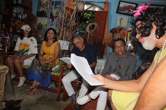 Todo caracterizado a rigor com o traje de “Muquirana”, o professor graduado em história, Clovis Carvalho, proferiu uma brilhante palestra sobre “O Carnaval e suas Origens até os Tempos Atuais”, tema do “Sarau A Estrada”, o primeiro do ano de 2020, realizado no último sábado, dia 8 de fevereiro, com a participação de mais de 20 pessoas que prestigiaram o evento.