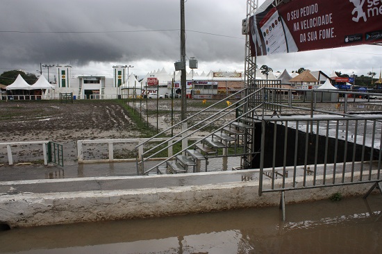 Foi muita chuva na semana e, principalmente, no domingo, reduzindo o movimento de pessoas no Parque de Exposição e, consequentemente, as vendas em geral. Muita gente desistiu de ir ao local e levar seus filhos para se divertir por causa do aguaceiro que foi constante do meado para o final de semana.