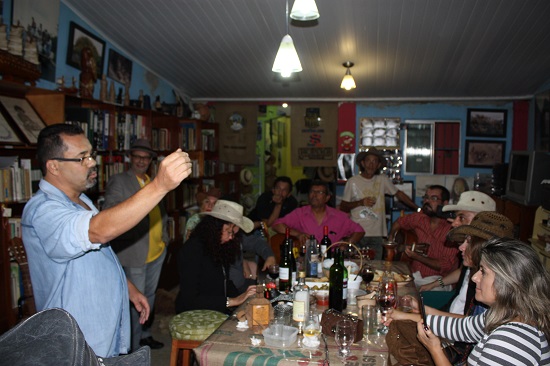Além da violada de artistas locais que sempre frequentaram nosso encontro, com muita honra, a noite foi recheada de belas declamações de poesias e um bate papo saboroso de causos, histórias, estórias e piadas, acompanhados de um vinho, uma cerveja e uma caipirinha feita por Walter Lages, que mais parecia um gaúcho nordestino. Claro que não faltou uma comida que ninguém é de ferro.