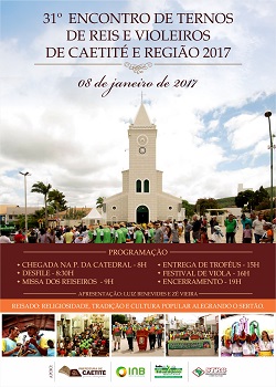 Por uma iniciativa da Prefeitura de Caetité, através das Secretarias Municipais de Cultura e Desenvolvimento Social, o município será palco, no dia 08 de janeiro de 2017, da 31ª edição do Encontro de Ternos de Reis e Violeiros.